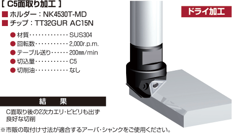 ※ワーク形状、クランプ状態、面取り量の大小、切刃位置により条件を調節して下さい。